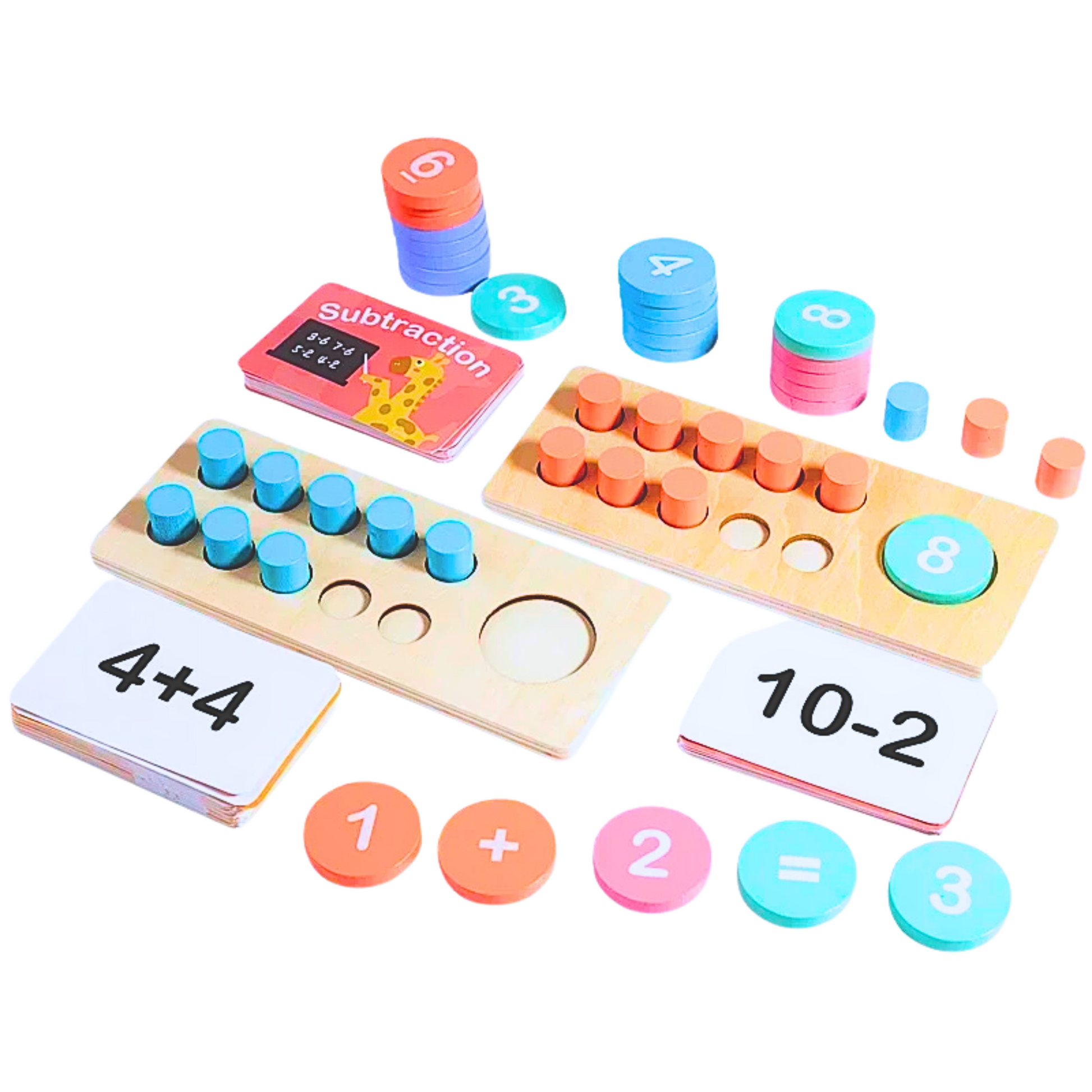 Includes counters, number tokens, and simple addition and subtraction problem flashcards/Share